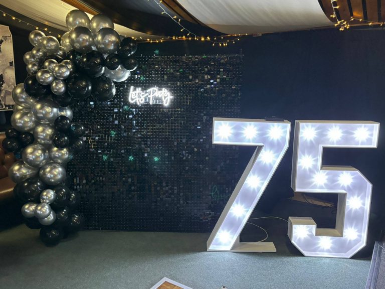 For those picture-perfect moments, we included large illuminated “75” numbers as a stunning photo backdrop, along with a fun photobooth so guests could capture plenty of laughs and memories throughout the night 📸