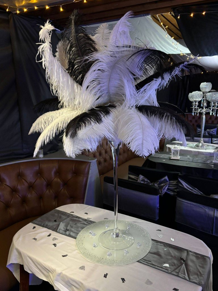 The concept focused on creating a respectful yet vibrant wartime-themed celebration, using red, white and blue event décor to honour the historic occasion. Simple yet effective touches such as colourful table decorations, themed balloon stands, and carefully placed aged paper snippets helped recreate the atmosphere of the 1940s wartime era, giving guests a nostalgic reminder of what life was like during that time.